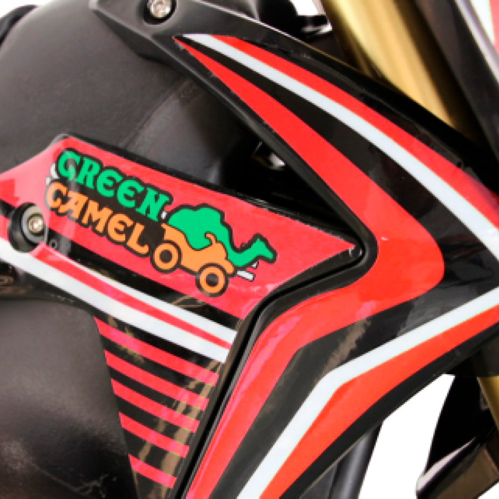 Электромотоцикл GreenCamel Питбайк DB500 в красном цвете - это уникальное транспортное средство, которое обеспечит вам незабываемые ощущения и свободу передвижения.