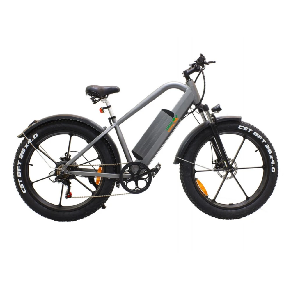 Купить Электровелосипед Грин Кэмэл Хищник (R26FAT 500W 48V 10Ah) Алюм, 6скор в сером цвете стал несомненным лидером продаж. Модель выглядит строго и модно одновременно. От техники исходит сила и мощь. Велик создан для любителей высокой скорости и выброса адреналина. Покупка электровелосипеда сделает отдых разнообразным, поможет забыть о проблемах прошедшего дня и ощутить, что такое порыв свежего воздуха.