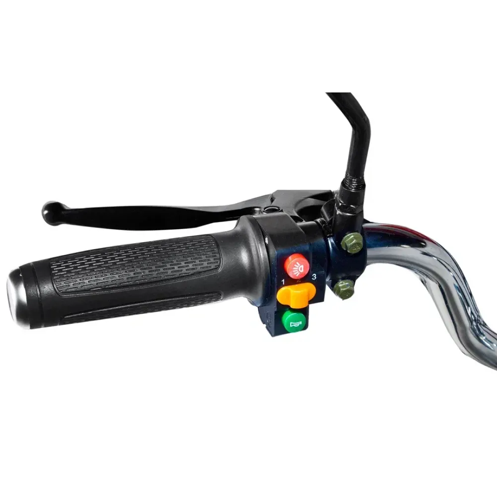 При мощности двигателя 500Вт максимальная скорость составляет 50 км/час. Наличие емкой АКБ в сочетании с другими элементами тс допускает преодоление 45 км пути на 1 подзарядке. При переходе на педальный режим дальность пути увеличивается.