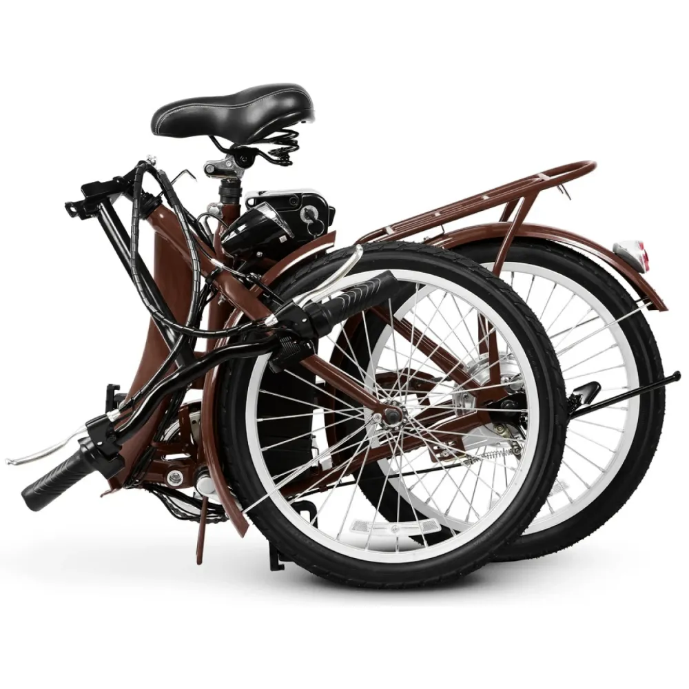 Для приобретения байка по разумной цене без переплат предлагаем связаться по телефону или в чате с менеджером нашего интернет-магазина. При параметрах электродвижка в 250 Вт городской байк способен разогнаться до 22 км/час. Максимальное преодоление дистанции без дополнительной подзарядки составляет 35 км. Техника оснащена быстросъемной батареей емкостью 10 А*ч, которая размещена за подседельной частью, не мешает райдеру при езде на продолжительные расстояния. Стальная конструкция рамы – складная, трансформируется одним движением руки, превращается в удобные для транспортировки и хранения размеры. Анатомическое седло регулируется в соответствии с ростовыми параметрами райдера, исключает проблемы с позвоночником и ощущение усталости. 20-дюймовая накатистая часть гарантирует отличную прохождаемость по разным видам поверхности. Если вас заинтересовал байк, предлагаем позвонить нам прямо сейчас.