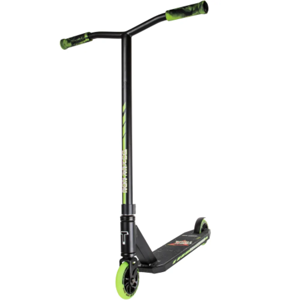 Трюковый самокат Duker 202 создан специально для детей от 5 лет. Максимально доступные вес ребёнка-50 кг, рост-130-165см. Особенность модели в ярком внешнем виде и светящихся колёсах, что, конечно, не может не понравится юным ездокам. Высота Y-образного стального руля самоката от зажима составляет 60 см, ширина его 54 см, диаметр 31,8 мм. Резиновые грипсы 12 см обеспечивают надежное сцепление с рулём, гасят удары. Несмотря на то, что самокат насчитан на начинающих, он оснащён системой компрессии HIC. Плюс этой системы- небольшой вес с отличной надежностью. Размер деки составляет: длина-50 см, ширина-11 см, футспейс- 35 см. Дека состоит из термически устойчивого алюминиевого сплава с пластиковыми заглушками для снижения веса. Колеса на алюминиевых дисках имеют размер 110 на 24 мм.